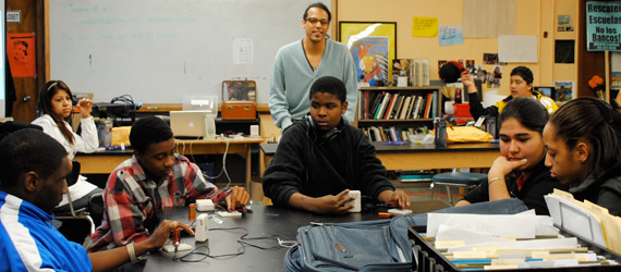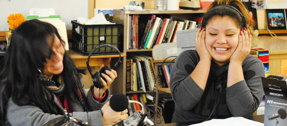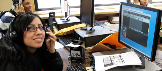 In the 2011 Winter-Spring Semester NEXMAP and June Jordan School for Equity teamed up to pilot a dynamic 14-week New Media Elective in Sound and Technology. During this class students explored Sound, how it surrounds us, how it can be manipulated to make music, and how the process of reformulating sounds can offer new ways of experiencing our surroundings. Thanks to a December Kickstarter.com campaign that raised $5,217 to pay instructors and materials, and in-kind support from Reaper Software and zzounds.com , NEXMAP was able to purchase tools and software and bring new media artists into the classroom.